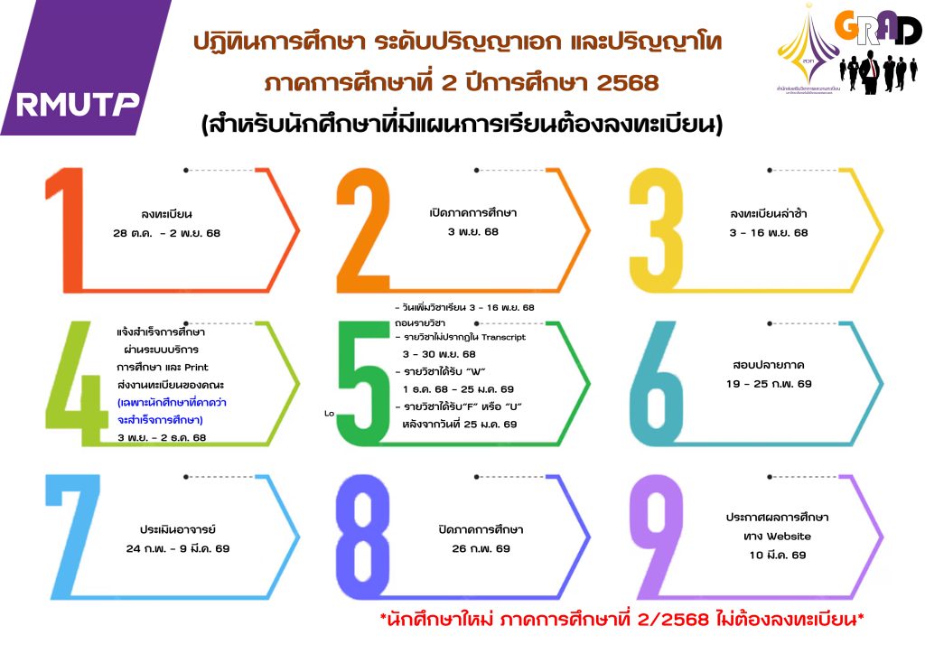 แจ้งเตือน นักศึกษา ป.โท/ป.เอก ภาคการศึกษาที่ 1/2568 (ยกเว้นนักศึกษาใหม่)