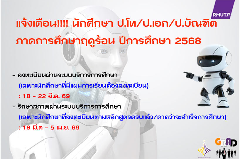 แจ้งเตือนการลงทะเบียนและรักษาสภาพ ภาคการศึกษาฤดูร้อน ปีการศึกษา 2567