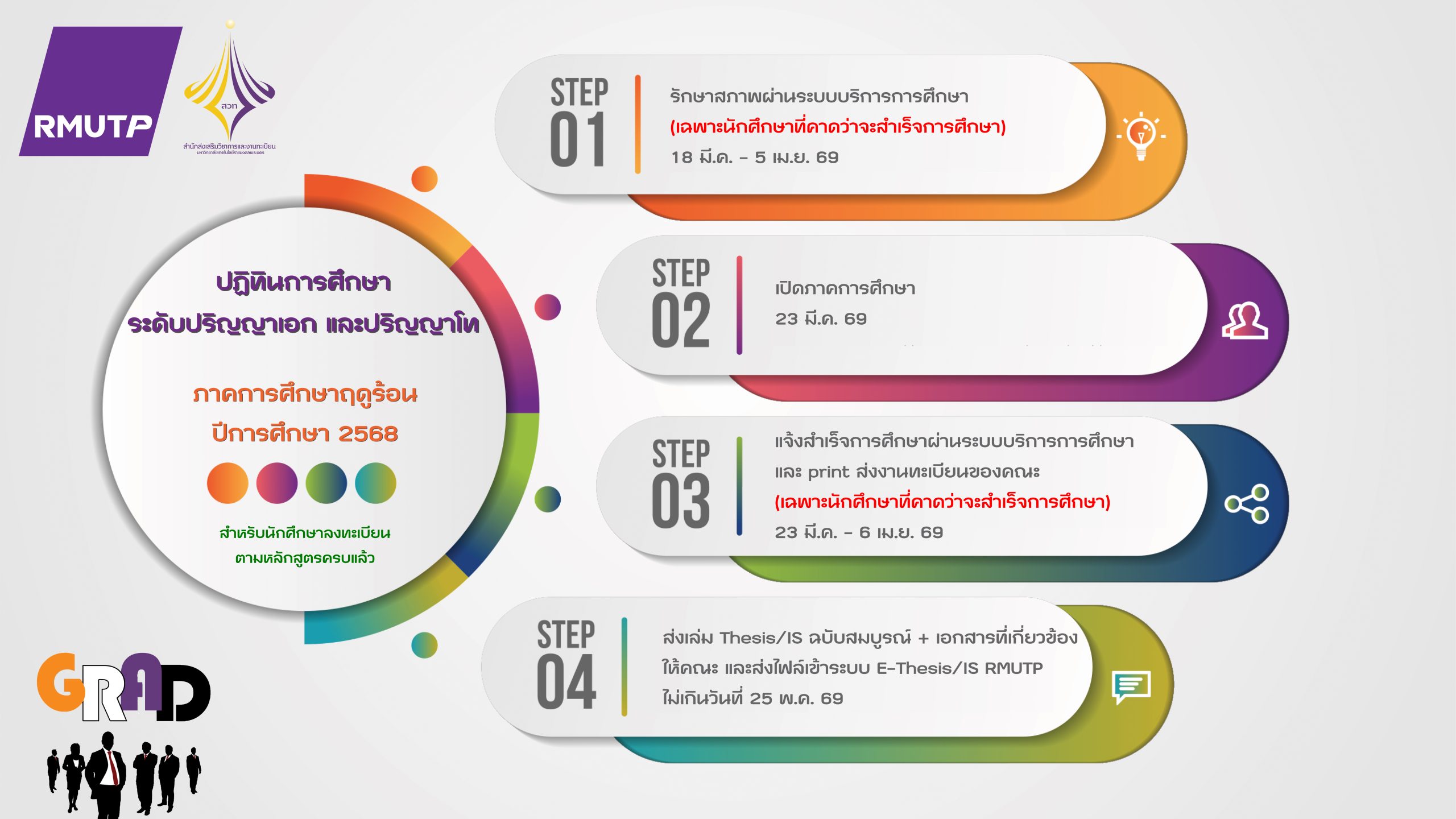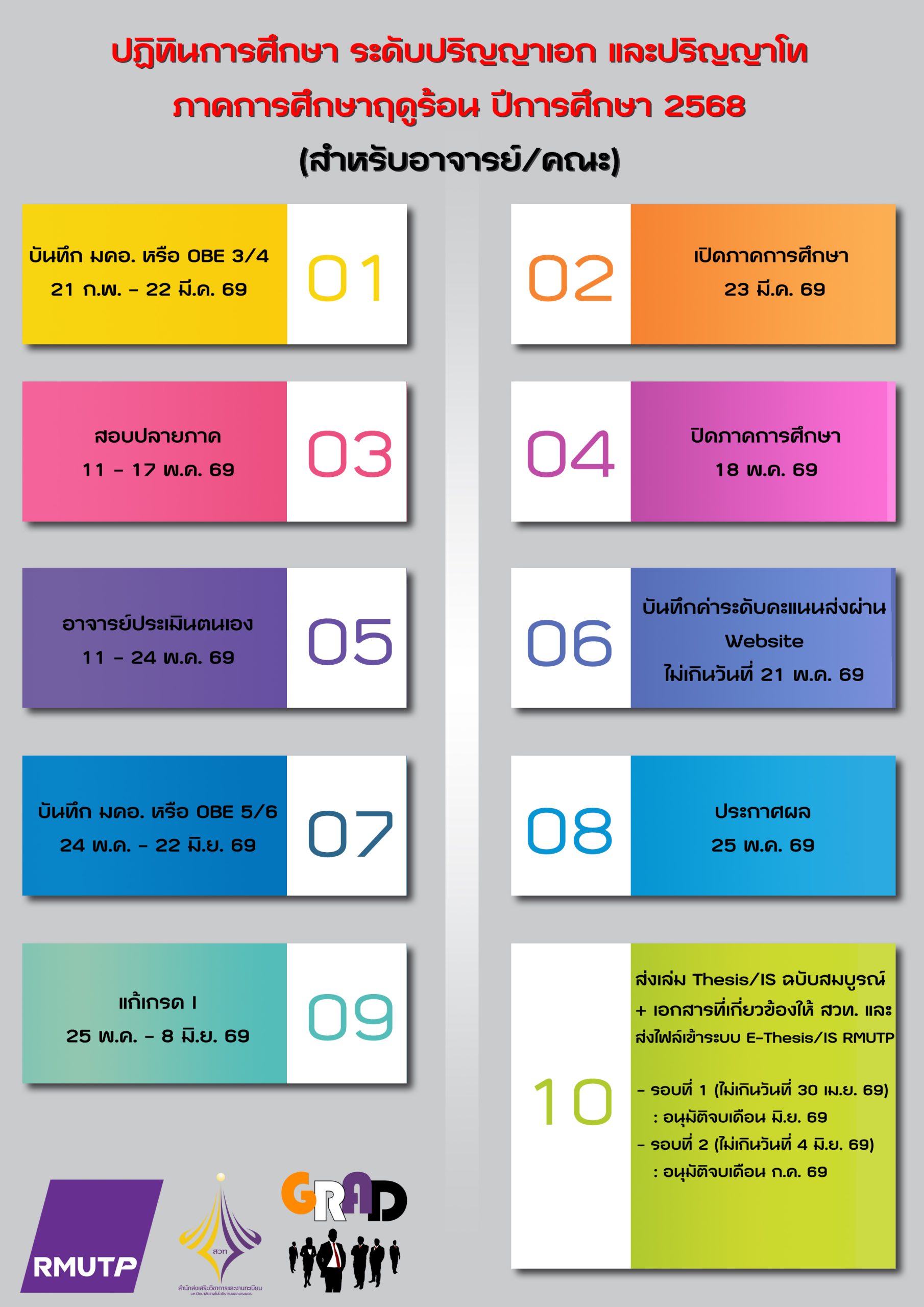 ข่าวประชาสัมพันธ์ ปฏิทินการศึกษา ระดับปริญญาเอก และปริญญาโท ภาคการศึกษาฤดูร้อน ปีการศึกษา 2568 Posted กุมภาพันธ์ 13, 2026กุมภาพันธ์ 13, 2026 admin_graduate >> Download ปฏิทินการศึกษา <<